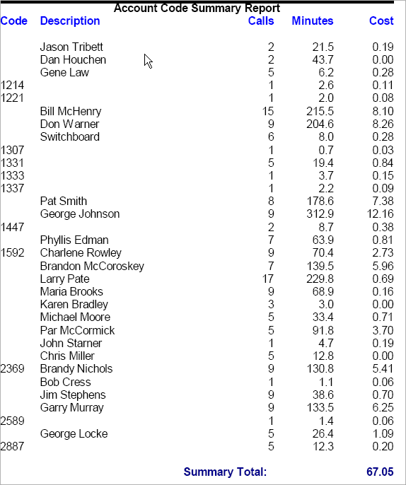 Section: Account Code Summary