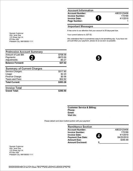 The Invoice Backer is printed on the back of the first invoice page. It uses the Invoice Backer, a generic image defined for each base on the Bases Admin Screen. The Invoice Logo for the base is inserted at the top left and the bottom left above the customer address. Information is also added to educate the customers on how to read their bill.